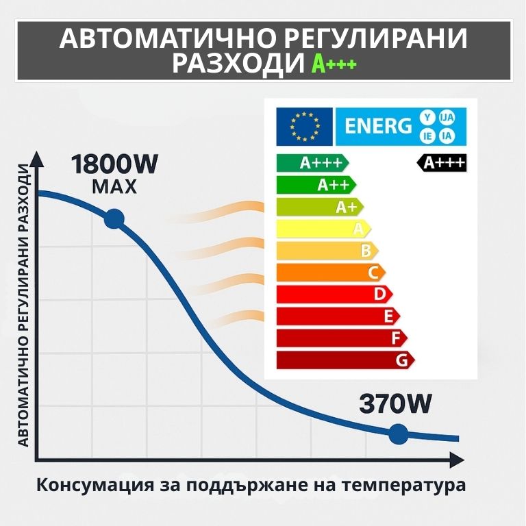 С Climatech 365 няма нужда да се притесняваш за консумацията: системата автоматично регулира мощността от 370W до 1800W според температурата и желания комфорт.