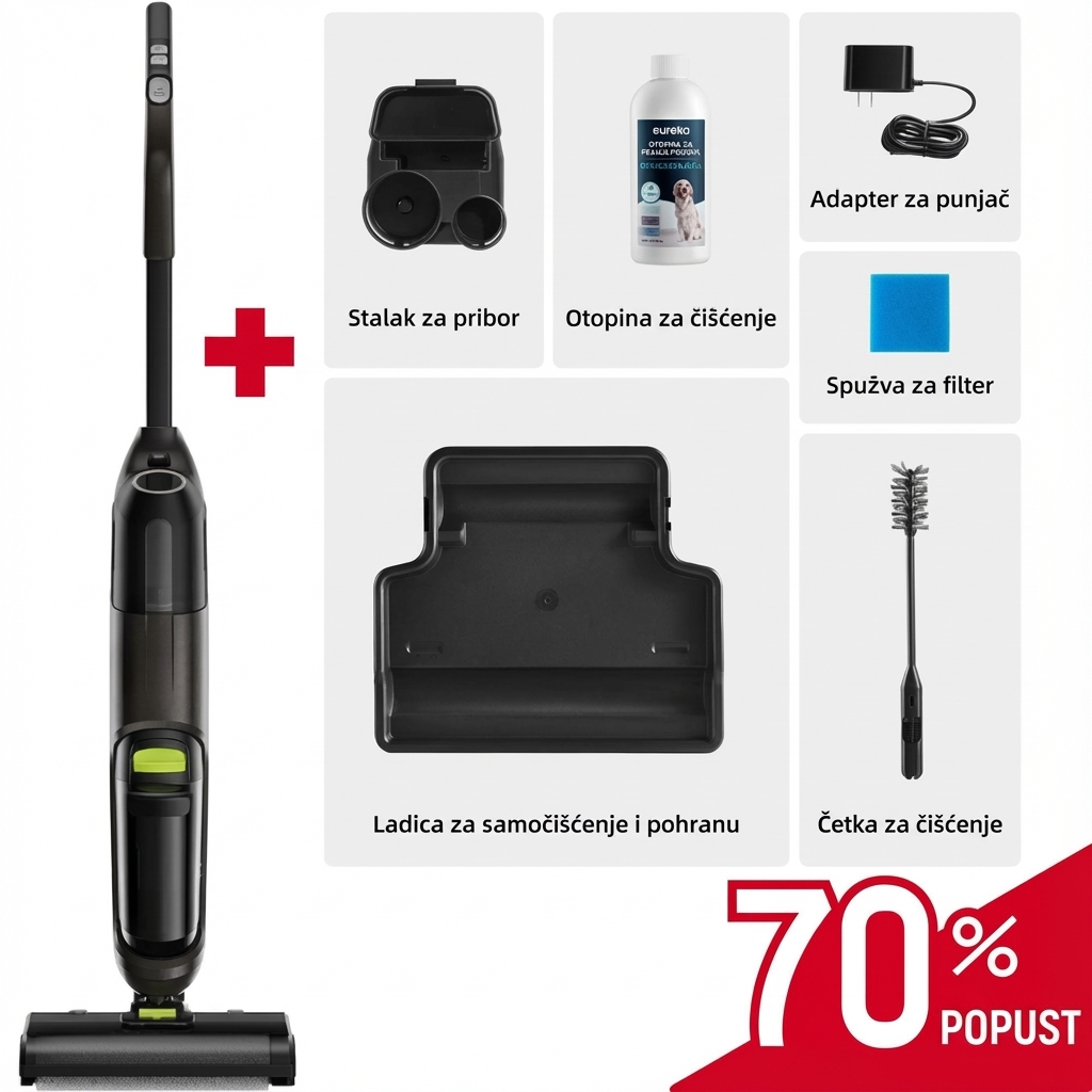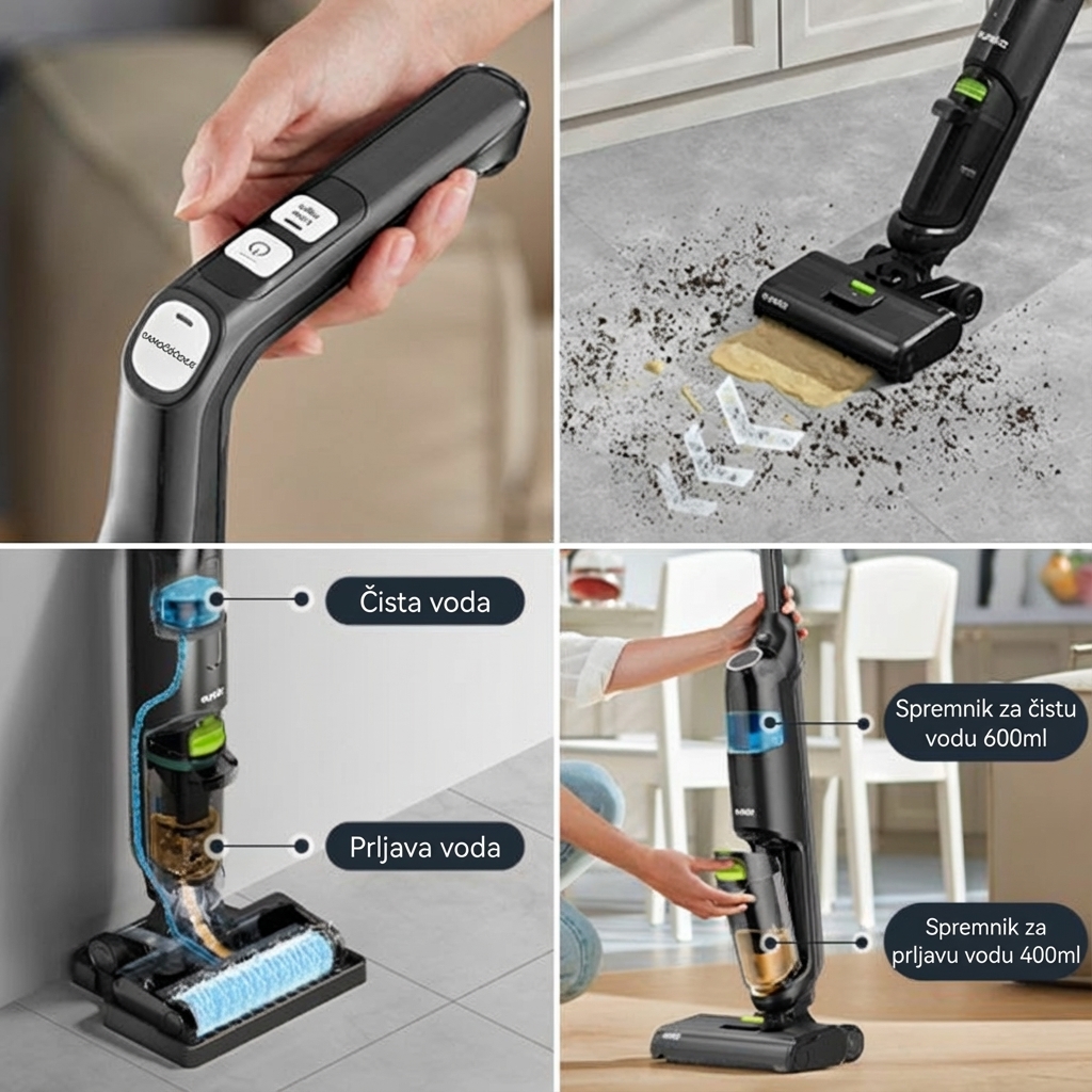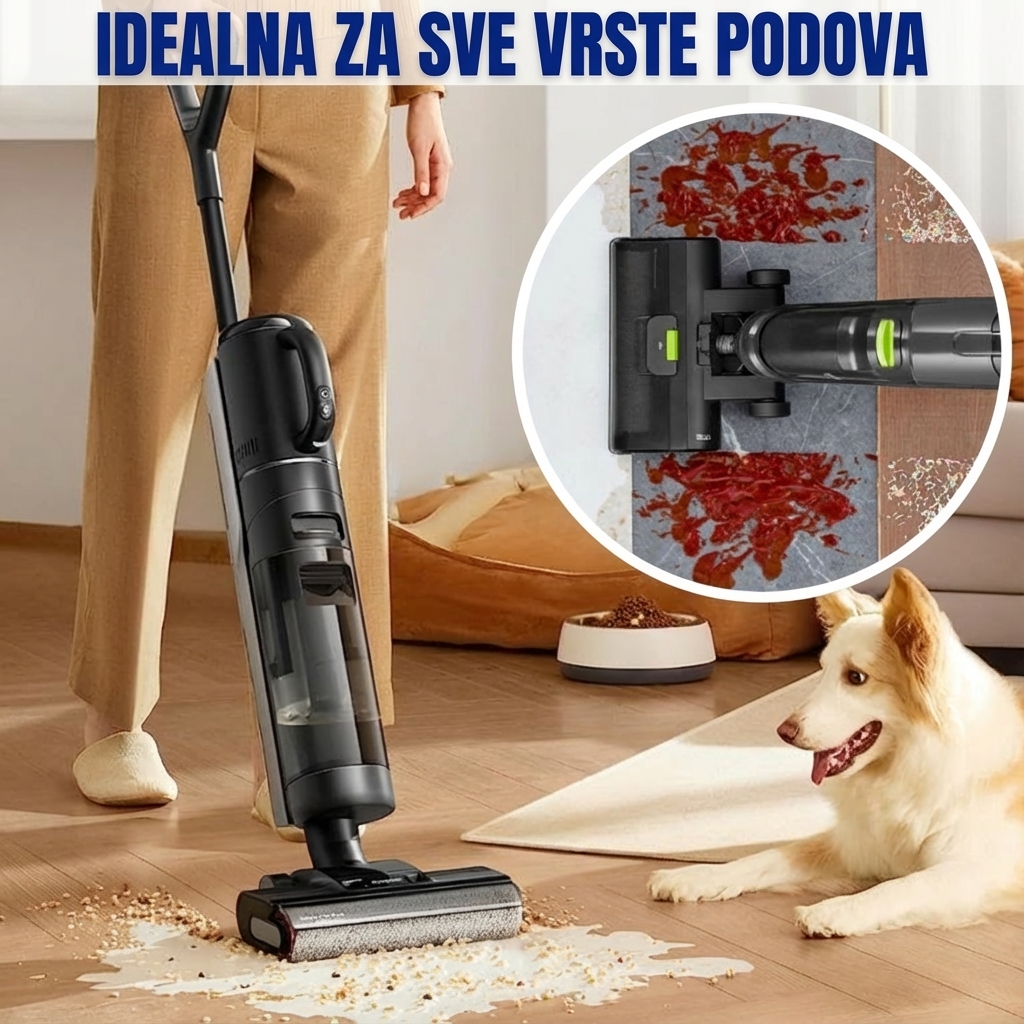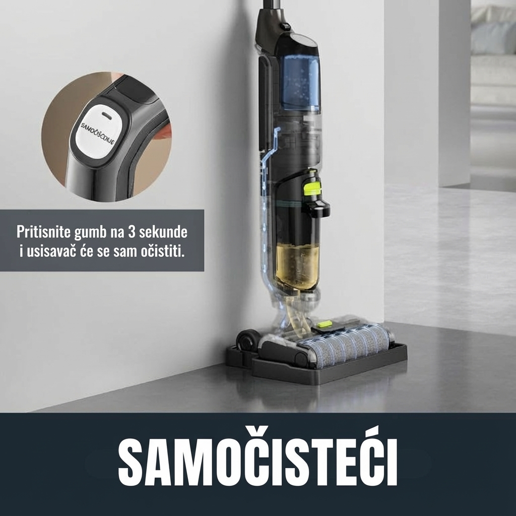 Čistač podova 4u1 koji vam omogućuje usisavanje, pranje, dezinfekciju i sušenje bilo kojeg poda ili tepiha u jednom potezu.