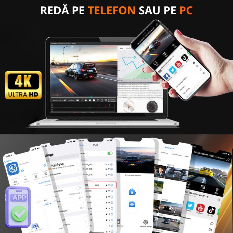 Înregistrează tot ce se întâmplă în jurul mașinii tale, zi și noapte, cu imagini ultra clare în 4K.