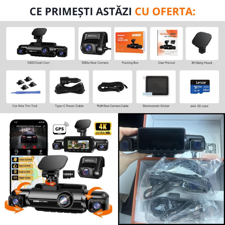 Dashcam dotată cu senzori inteligenți de parcare, înregistrează în 4K chiar și noaptea și la detectarea mișcării, cu o autonomie de 72 de ore în modul parcare și instalare rapidă și ușoară, fără a fi nevoie de mecanic.