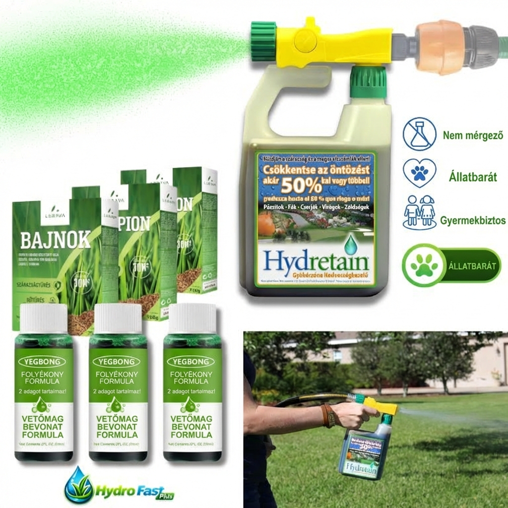 “A gyep tele volt lyukakkal és száraz foltokkal. A Hydro Fast Plus segítségével rövid időn belül újra zöld lett.”