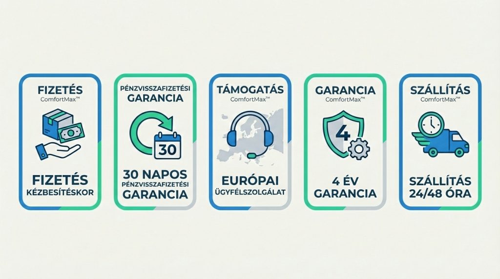 4 év garanciát kap. Ezenkívül, ha a termék nem felel meg az igényeinek, 60 napon belül visszaküldheti, és teljes visszatérítést kap.