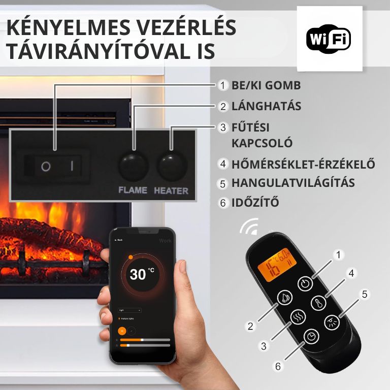 A beszerelése rendkívül egyszerű volt, a használata pedig még könnyebb. A távirányítóval vagy a Wi-Fi alkalmazással anélkül tudom be- és kikapcsolni, valamint szabályozni a lángot és a hőt, hogy fel kellene állnom a kanapéról.