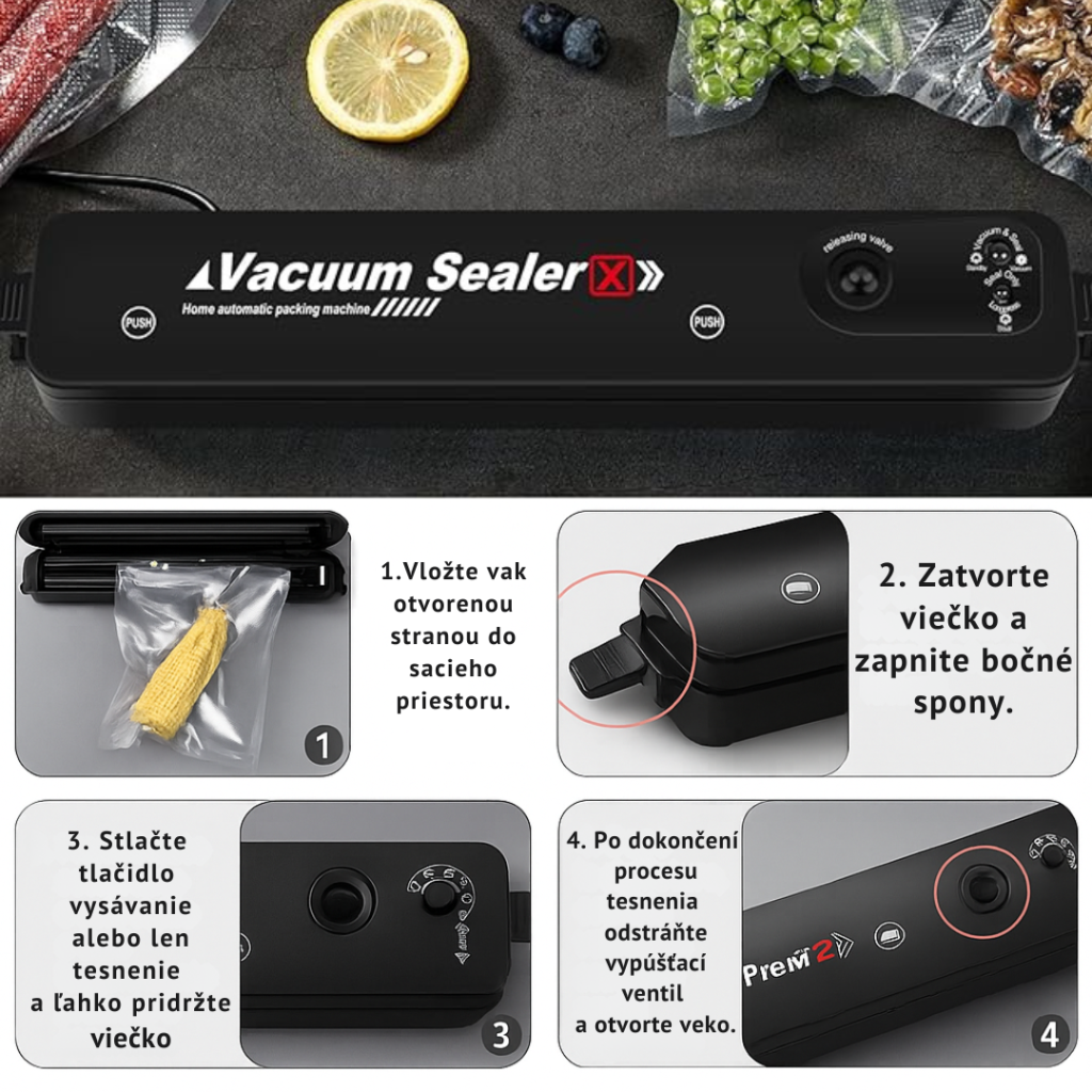 Je výkonný, ľahko sa používa a je ideálny aj pre veľké porcie, ako je mäso alebo ryby. Za pár sekúnd odstráni všetok vzduch a udržuje potraviny čerstvé oveľa dlhšie – bez nepríjemného zápachu alebo spálenia mrazom.